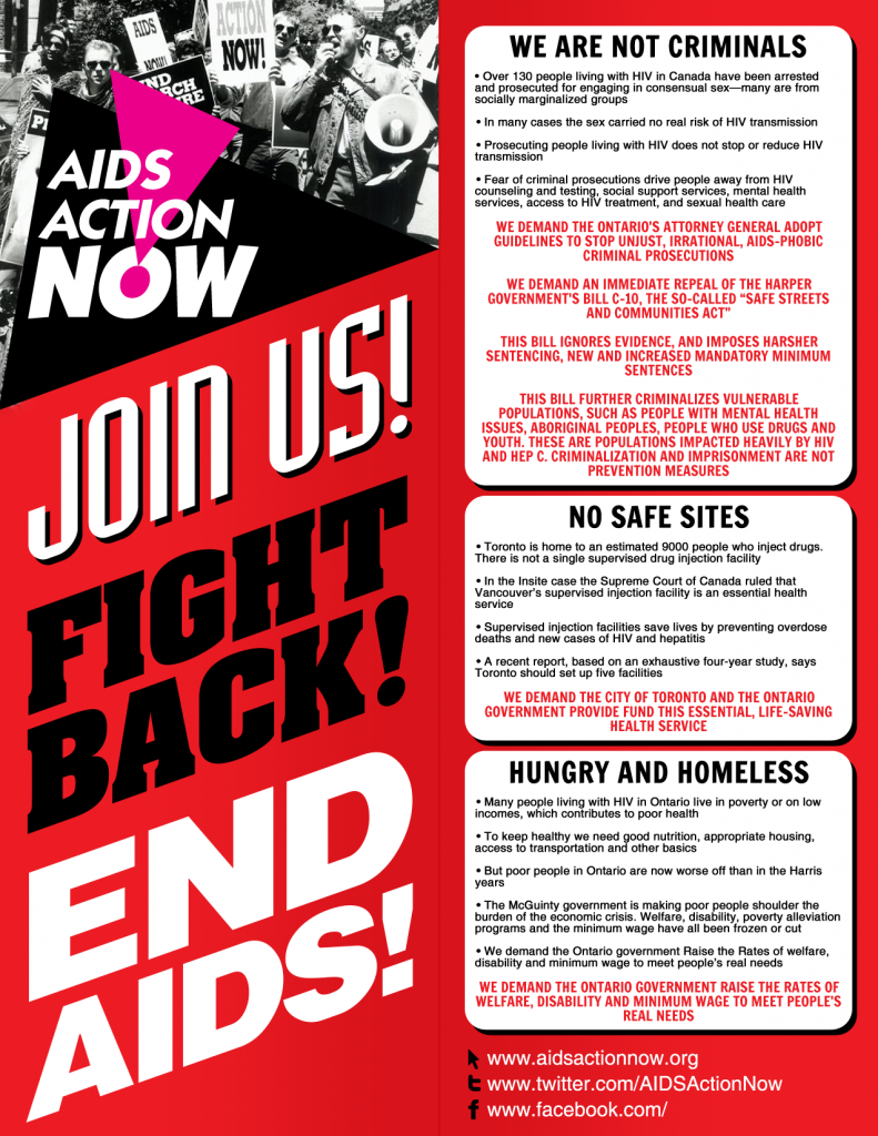 AIDS ACTION NOW! members will be attending screenings of United In Anger: A History of ACT UP. In conjunction with the film, we’ll be handing theatre goers leaflets and answering a few questions during the Q&A, bringing awareness that AIDS is not over and the various issues we are fighting today.